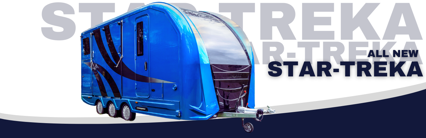 The Star-Treka is a rear facing, spacious two horse trailer with luxury overnight accommodation. This stunning trailer features the latest in aerodynamic body styling which is unique to the Equi-Trek range, and the triaxle chassis allows for both a spacious horse area and living area.